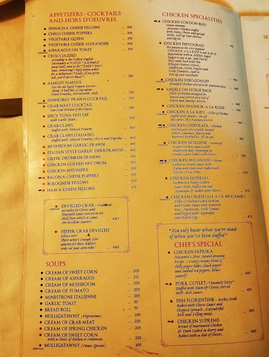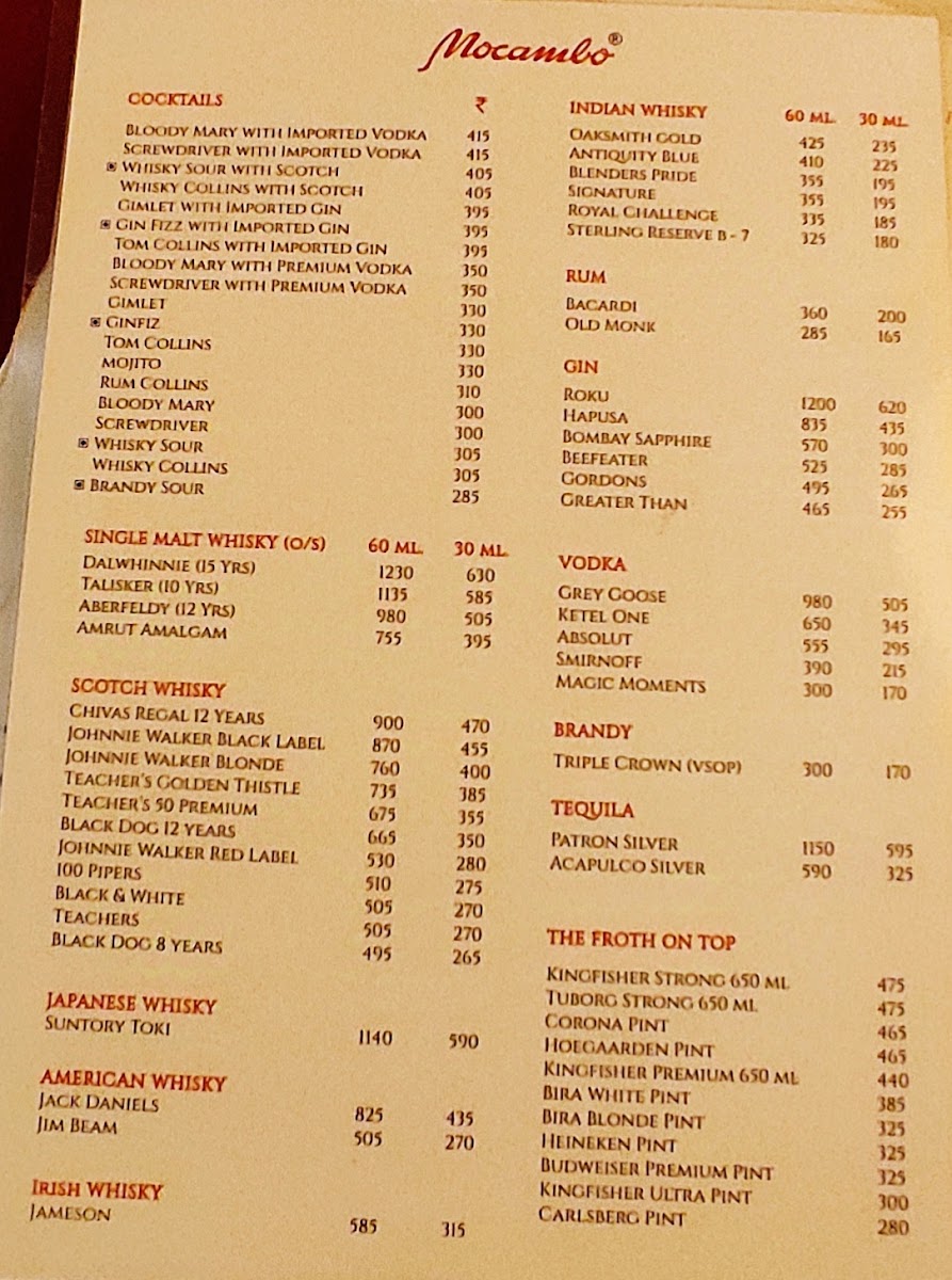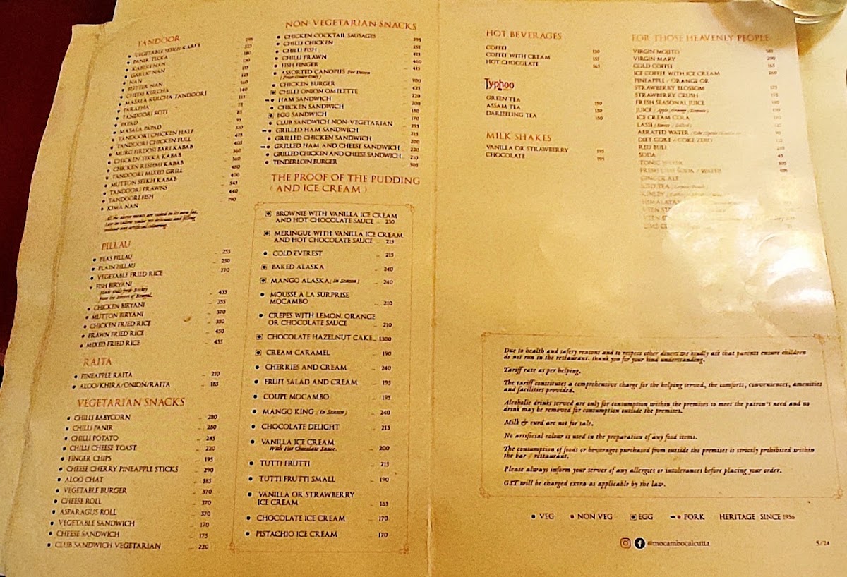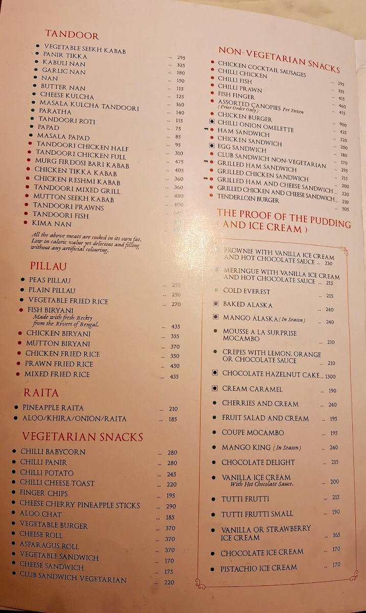 Mocambo Restaurant and Bar, nestled in the heart of Kolkata on Mirza Ghalib Street, invites you on a delightful culinary journey through its Continental menu. The offerings showcase a harmonious blend of flavors, with house specials like the Chicken Supreme, marinated to perfection and baked with a rich slab of cheese, and the Pork Cutlet, an exquisitely tasty dish packed with ham and cheese. Vegetarians can indulge in the freshly made Mushroom Crepes or the creamy Asparagus Au Gratin. For rice lovers, the selections, which include Fish Biryani and Peas Pulao, bring aromatic basmati and vibrant spices to the forefront. Patrons have praised their overall experience, from memorable dishes like Lobster Thermidor to the decadent Baked Alaska. With its warm ambiance and attentive service, Mocambo promises a dining experience that lingers in your memory.